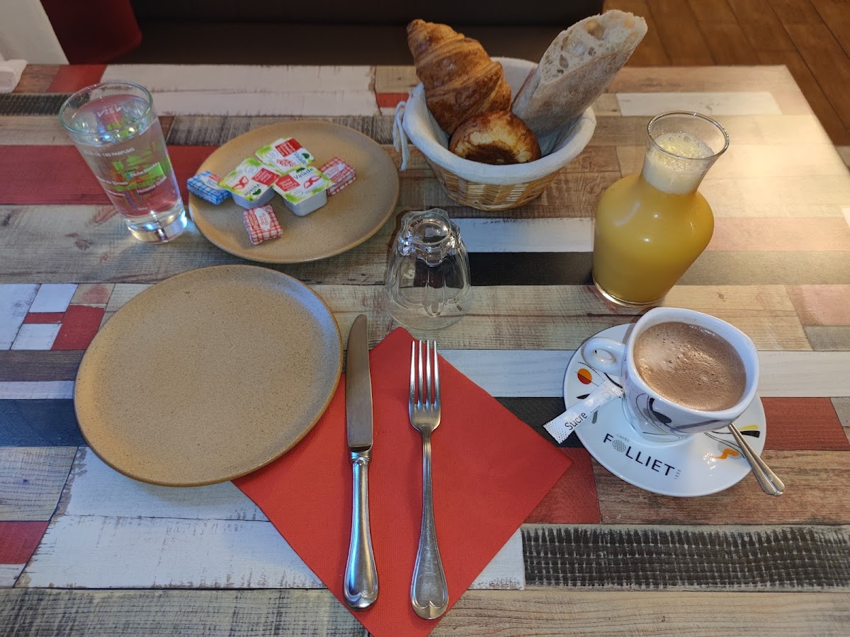Petit hôtel restaurant top avec un accueil impecable bref de vrais commerçants et la demie pension est imbattable avec des plats faits sur place et le petit déjeuner simple avec pain et viennoiserie tiède donc efficace. Très bon rapport qualité prix bravo et merci tenez bon !